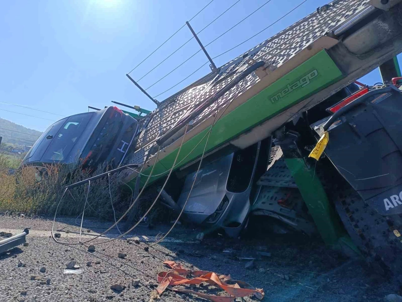 TEM Otoyolu’nun Bolu geçişinde 8 adet lüks aracı taşıyan tır, kontrolden çıkarak devrildi. Tırın dorsesindeki lüks araçlar hurdaya döndü.