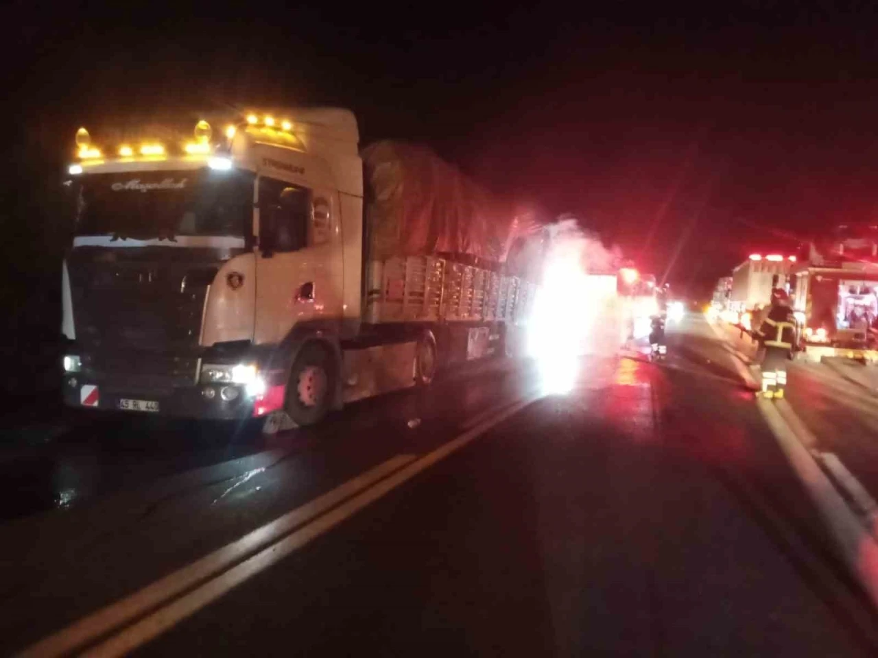 Sakarya’nın Pamukova ilçesinde tomruk yüklü tırın balatalarında çıkan yangın itfaiye ekiplerince söndürüldü. Olaya şahit olan bir kişi ise, o anları spiker gibi anlattı.