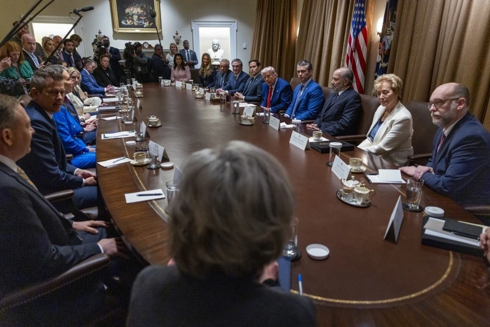 ABD Başkanı Donald Trump, yönetimde şeffaflık yaklaşımı çerçevesinde basına açık olarak gerçekleştirdiği kabine toplantısının ardından basın mensuplarının sorularını yanıtladı. Kabine toplantısı, ABD yönetiminin ticaret savaşı endişelerine neden olan vergiler konusunda ani bir politika değişikliğine giderek dünya genelindeki onlarca ülkeye yönelik ağır gümrük vergilerini 90 günlüğüne askıya alma kararının ardından geldi.