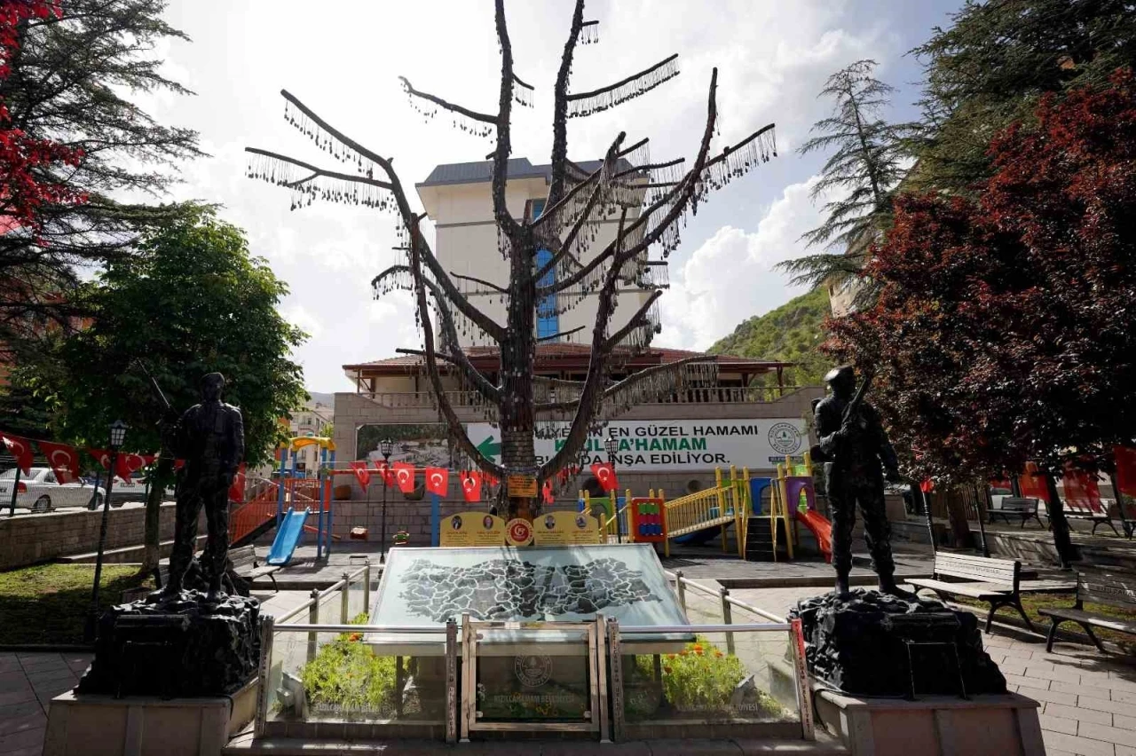 TUSAŞ’a gerçekleştirilen hain saldırı sonucu şehit olan Zahide Güçlü, Murat Aslan, Cengiz Coşkun, Atakan Şahin Erdoğan, Hasan Hüseyin Cambaz’ın isimlerinin yazılı olduğu künyeler Şehit Anıt Ağacı’na asılacak.