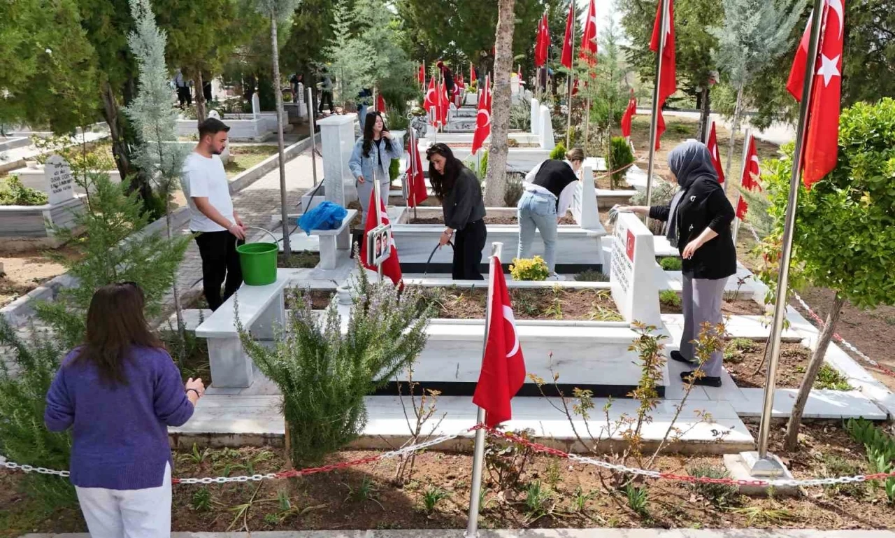 Üniversite öğrenicisi Fatma Karkın ise, "Buraya, bayram öncesi şehitlerimizi anmak ve bayramda ziyarete gelen ailelerin yüzünde tebessüm bırakmak için geldik" diye konuştu.