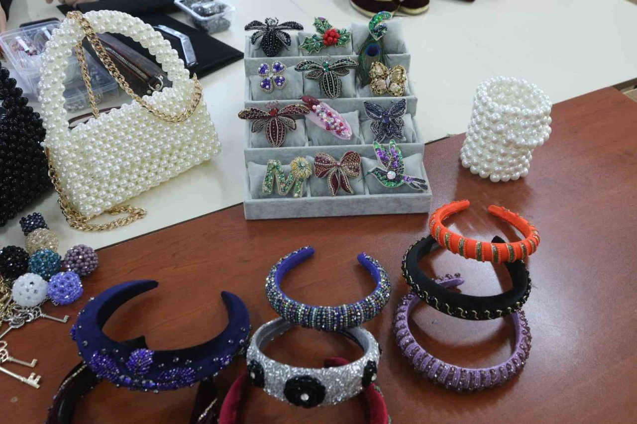 Sakarya’da meslek edindirme kurslarında eğitim alan kadınlar, ürettikleri çanta, broş, şapka, toka, taç gibi ürünleri kazanca dönüştürüyor.
