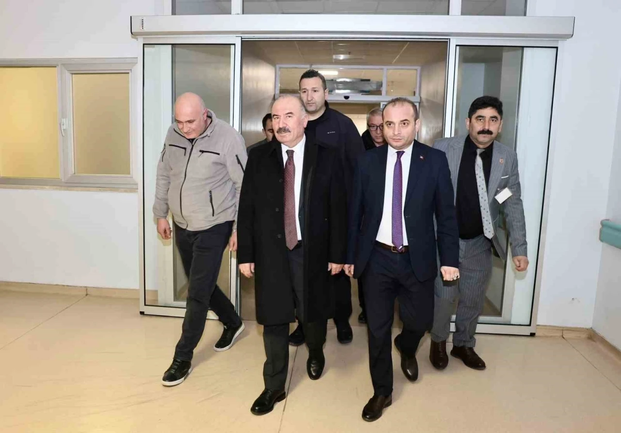 Çorum Valisi Ali Çalgan, Alaca ilçesinde kazaya müdahale ederken kamyonun çarpması neticesinde yaralanan polis memurunu ziyaret ederek sağlık durumu hakkında bilgi aldı.
