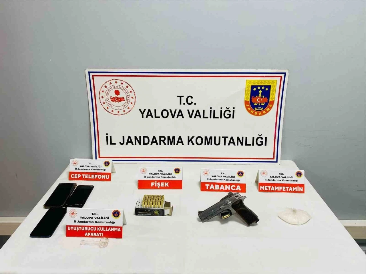 Yalova İl Jandarma Komutanlığı ekipleri M.K., T.O. ve C.B.’nin Bursa’dan Yalova’ya uyuşturucu madde getirerek piyasaya süreceği bilgisine ulaştı. Şüphelilerin içinde bulunduğu otomobil Kirazlı yol kontrol noktasında durduruldu. Araçta yapılan aramada, 75 gram metamfetamin, 1 uyuşturucu kullanma aparatı, tabanca, 45 adet tabanca fişeği ele geçirildi. Gözaltına alınan 3 kişinin jandarmadaki işlemleri devam ediyor.