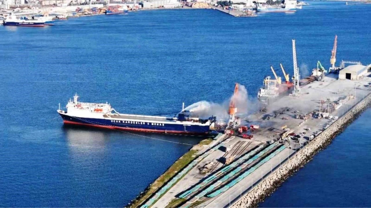 Ceynak Grup Samsunport Sanayi Rıhtımı’nda demirli bulunan Uçak Kardeşler-Menas’a ait Palau bayraklı Fıruze G adlı kuru yük gemisinde 28 Ocak günü yangın çıkmıştı. Yangınla ilgili soruşturma ve incelemeler devam ediyor. Gemide oluşan hasarlarla ilgili işlemler ve soruşturmalar devam ederken, geminin limandan ayrılması için hem bayrak devletinden hem de savcılıktan yangın ve sonrası ile alakalı yazı gelmesinin beklendiği öğrenildi.