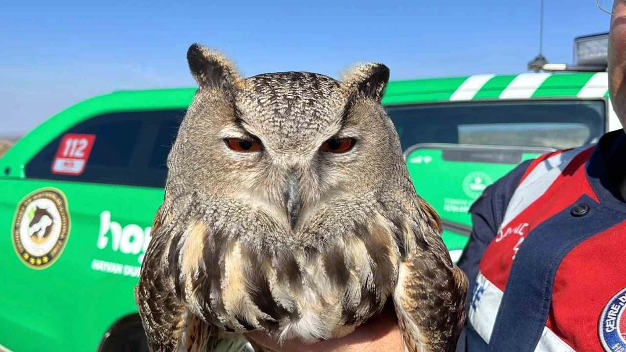 Yozgat’ta jandarmanın bulduğu yaralı puhu kuşu tedavi altına alındı
