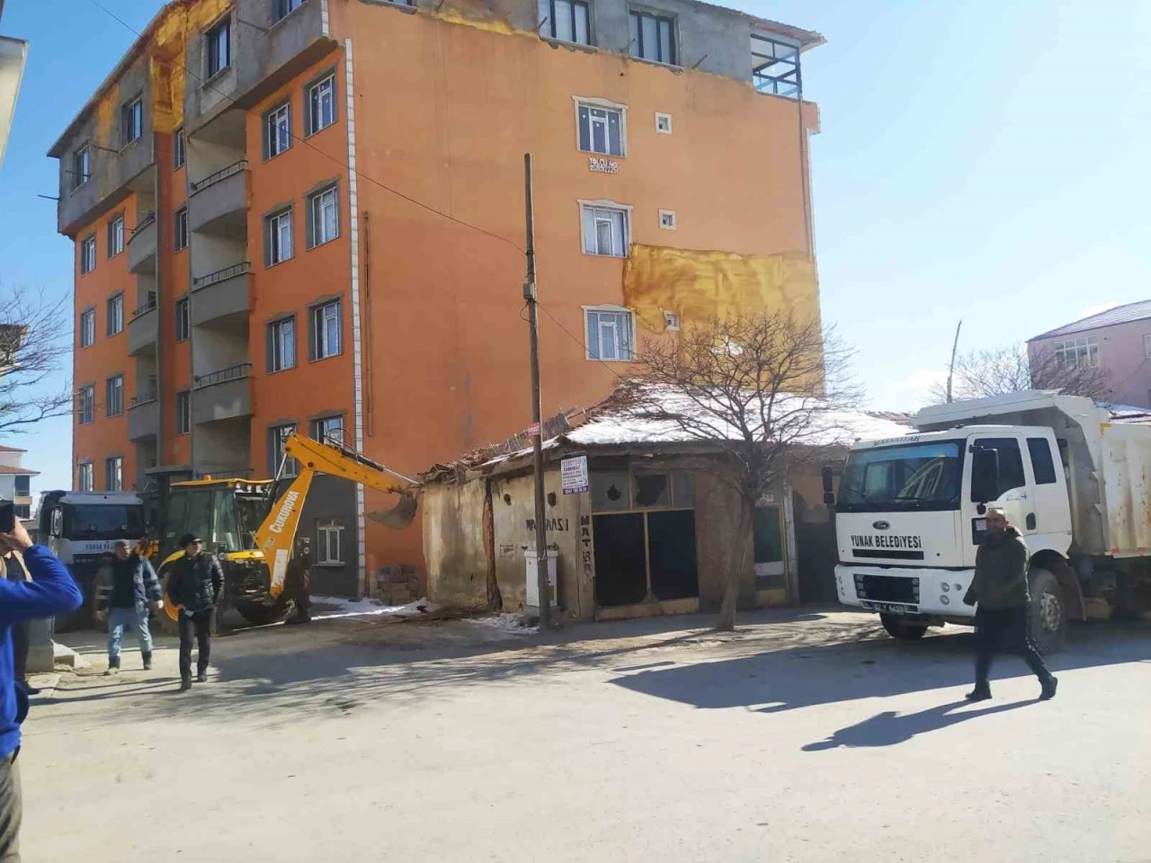 Konya’nın Yunak ilçesinde metruk binaların yıkımına başlandı.