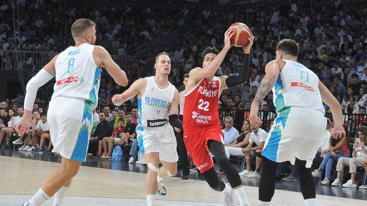 Sinan Erdem Spor Salonu'nda oynanan karşılaşmaya Türkiye; Buğrahan Tuncer, Furkan Korkmaz, Cedi Osman, Sadık Kabaca, Sertaç Şanlı ilk 5'iyle başladı. Slovenya'nın ilk 5'i ise Goran Dragic, Doncic, Zoran Dragic, Cancar ve Tobey'den oluştu. Karşılaşmaya iyi başlayan milli takım, hücumda Furkan Korkmaz'ın etkili oyunuyla ilk 4 dakikayı 12-9 önde geçti. Periyodun kalan bölümünde kenardan gelen Alperen ve Onuralp ile hücumda etkili olan Türkiye, faul hakkı erken dolduğu için Slovenya'nın faul çizgisinden bulduğu sayılara engel olamadı. Milli takım, ilk periyodu 26-21 önde kapattı.