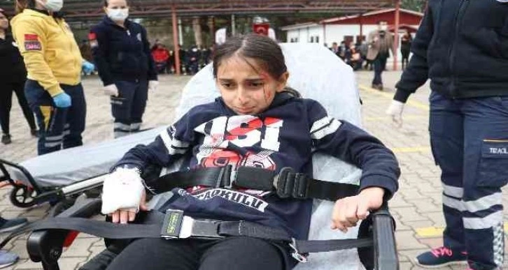 İçişleri Bakanlığı ve Milli Eğitim Bakanlığı arasındaki iş birliği protokolü gereğince Deprem Haftası etkinlikleri kapsamında 81 ilde eş zamanlı yapılması planlanan “deprem anı ve tahliye tatbikatı” kent genelindeki tüm okullarda düzenlendi.