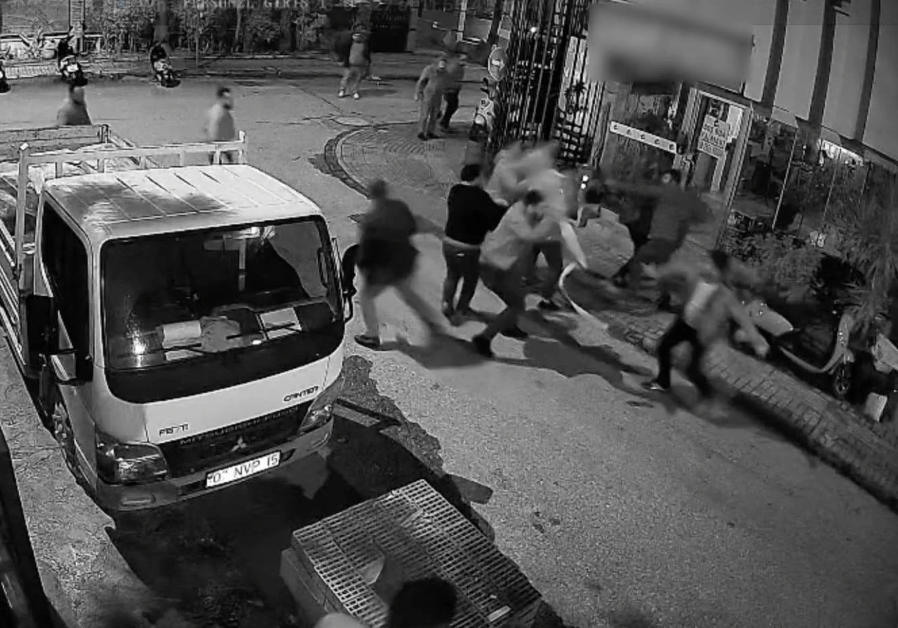 Alanya’da kanlı biten alacak verecek kavgasında çok sayıda kişinin zincir, sopa ve bıçaklarla birbirlerine girdiği anlar bir işletmenin güvenlik kameraları tarafından anbean görüntülendi.