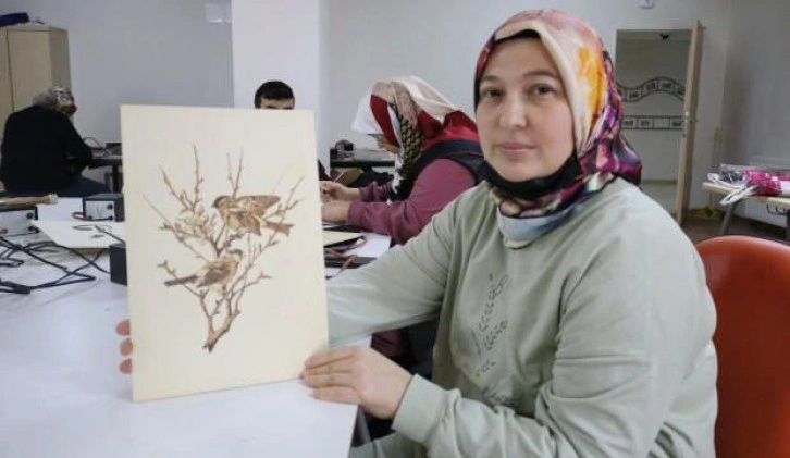 ÖĞRENMENİN YAŞI YOK Ahşap yakma sanatına eskilerden beri merakı olduğunu söyleyen ve bu sanatın ayrıca terapi olduğunu vurgulayan Sebahattin Günaydın, İHA muhabirine yaptığı açıklamada, “Eskilerden beri buna böyle bir merakım vardı. Buraya geldim, şu anda 5 gündür performansımız var. Hocamızın gayretleri ve becerileri bizim gibi acemileri iyi yönlendirmesi sayesinde biz bu aşamaya kadar geldik. Şunu gördüm bunun tam bir terapi çalışması olduğunu insanların stresinin bir anda gittiğini, kafasının boşaldığını ben kısa zamanda gördüm umut ediyorum ki bunu ömrümün sonuna kadar yapmaya çalışacağım. Sonuç olarak şunu diyorum, öğrenmenin yaşı yok. Yeter ki azim ve irade” dedi. YAKARAK SANATA DÖNÜŞÜYORTaşova YEG Derneği Başkanı Kadir Aydoğan, “Türkiye Cumhuriyeti ve Avrupa Birliği’nce desteklenen LEADER (Kırsal ekonominin kalkındırılması için faaliyetler arasındaki bağlantılar) tedbir kapsamında, projemizin kabulüyle faaliyetlerime başladık. Burada arkadaşlarımız özellikle fırsatı olan, yakma sanatıyla eğitim alıyorlar. Şu ana kadar yaptığımız çalışmaların oldukça verimli olduğunu gördük. Elde ettiğimiz ürünler şu anda elimizde gördüğünüz gibi henüz yeni başlamış olan arkadaşlarımızın çalışmaları. Burada yakarak, yaktığımız tabloları tahtada şekillendiriyoruz. Ve akabinde bu sanata dönüşüyor” diye konuştu.