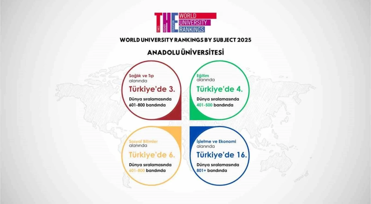 Anadolu Üniversitesi, dünyanın saygın derecelendirme kuruluşlarından biri olan Times Higher Education (THE) tarafından açıklanan THE World University Rankings 2025 sonuçlarına göre listeye giren Türkiye’deki 111 üniversite arasında 13’ncü olmuş, ayrıca devlet üniversiteleri arasında ise 6’ncı sırada yer alma başarısı göstermişti.