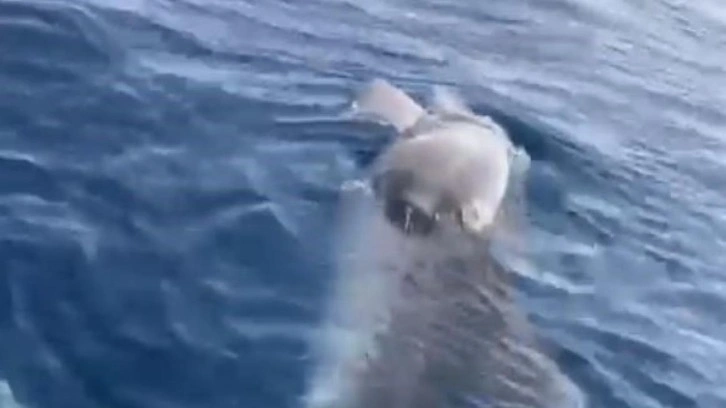 Antalya Kemer ilçesi Beldibi açıklarına tekne ile açılan amatör balıkçılar, su yüzeyinde hareketsiz duran yaklaşık 2-3 metre büyüklüğünde yunusu fark etti.