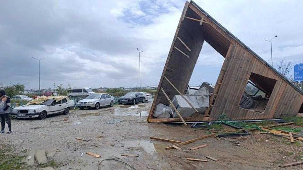 Hortum, iş yerinin önünde örnek olarak bulunan 2 ton ağırlığındaki üçgen evi otomobillerin üzerinden uçurup 30 metre ileride ters döndürürken, çatısını iş yerinin önünde park halindeki otomobillerin üzerine attı. Hortumun havalandırıp otomobillerin üzerine attığı karavan yapılmak üzere bekleyen hafif ticari araç ise görenleri hayrete düşürdü.