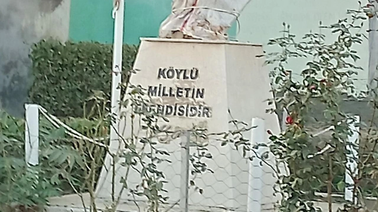 Büstlerden birine dışkı sürülürken, diğerine çuval geçirildi.