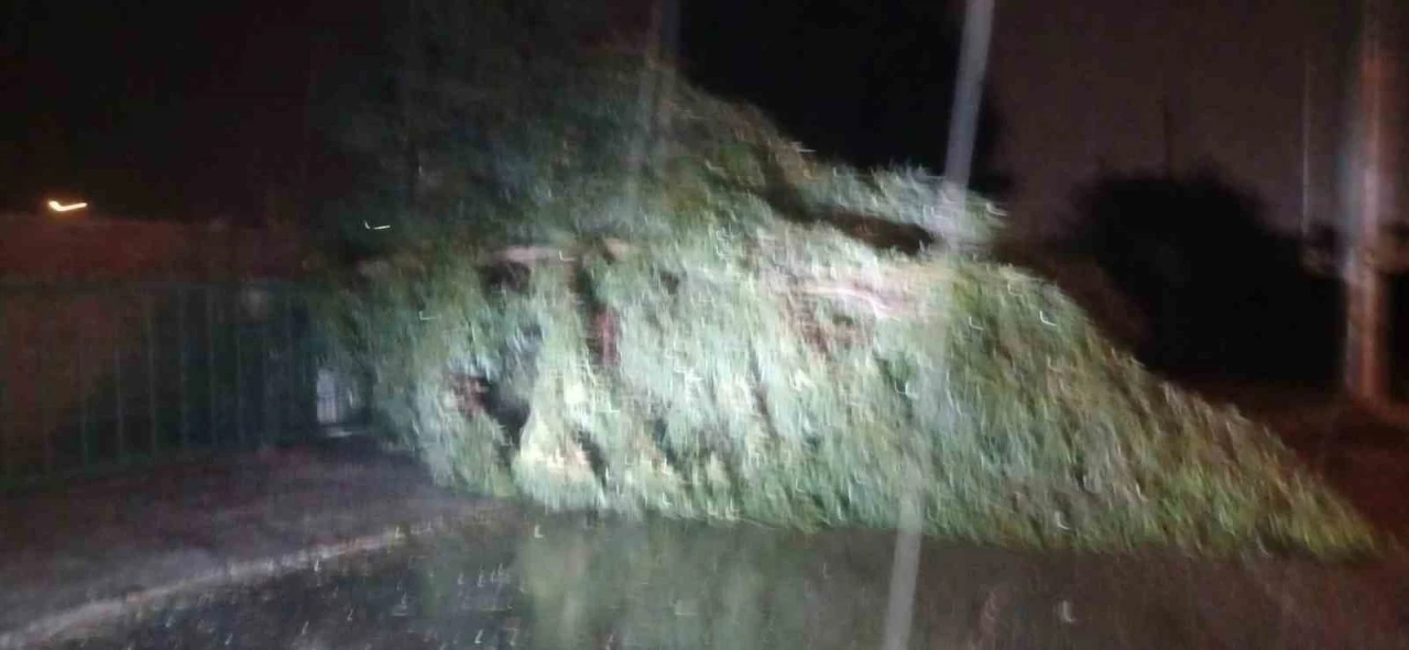 Aydın’da gece saatlerinde etkili olan kuvvetli rüzgar ve fırtına nedeniyle bazı ağaçlar devrildi, trafikte aksamalar yaşandı.