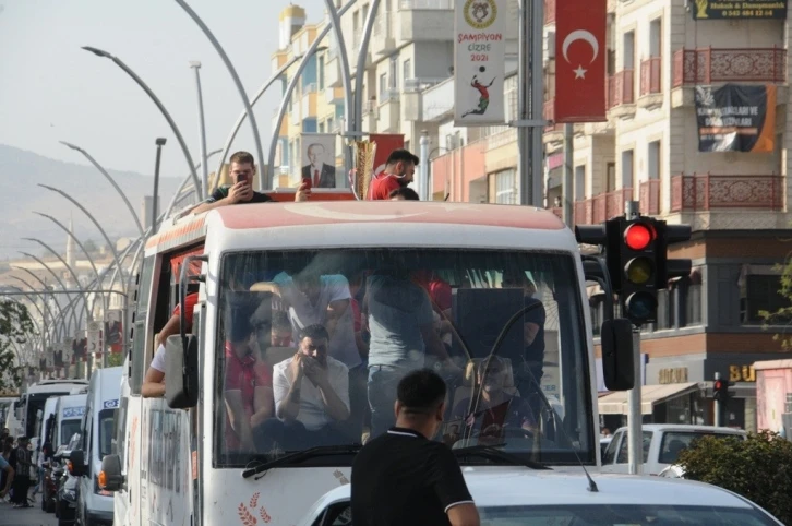 Voleybol Erkekler Balkan Kupası’nda Kosova ekibi KV Peja’yı 3-0 mağlup eden Cizre Belediyespor, şehir turu attığı ilçede taraftarlar tarafından coşku ile karşılandı.