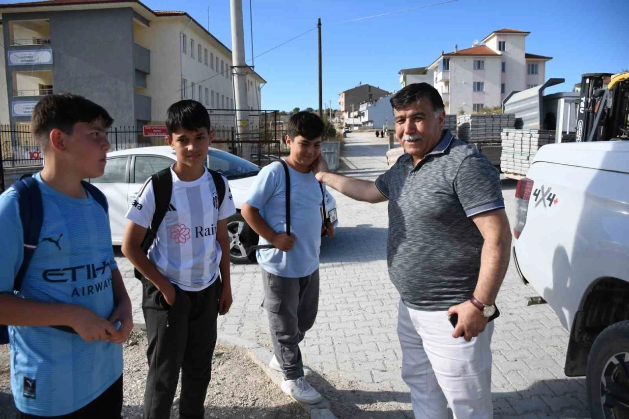 Belediye Başkanı Mustafa Koca, öğrencilerin güvenli bir şekilde okula giriş ve çıkışlarını sağlamak amacıyla belediye olarak kaldırım düzenleme ve parke taşı döşeme çalışması başlattıklarını belirtti.