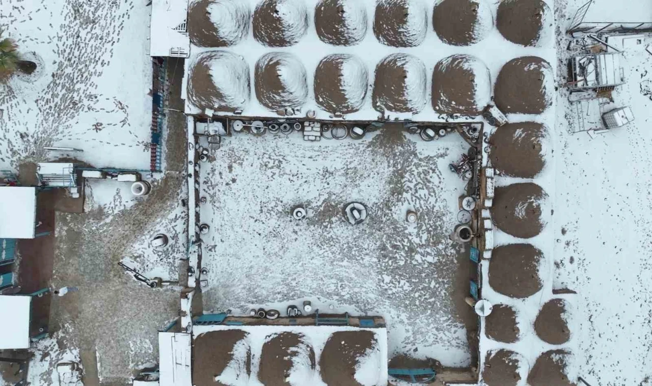 Şanlıurfa’nın tarihi ve turistik ilçesi Harran’da havadan görüntülenen kar görüntüleri eşsiz manzaralar oluşturdu.