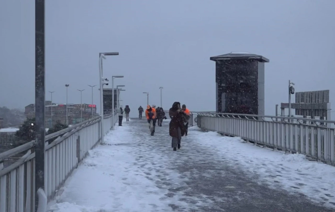 İstanbul Beylikdüzü metrobüst üst geçidi ve park halindeki araçların üzeri karla kaplandı. Sabah işine gitmeye çalışan vatandaşlar zor anlar yaşadı.