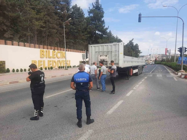 Bilecik’te seyir halindeki tırın dorsesinin bağlantı yerinden kırılarak ayrılması sonrasında yürekler ağza gelirken, arkasında araçların olmaması muhtemel bir faciayı önledi.