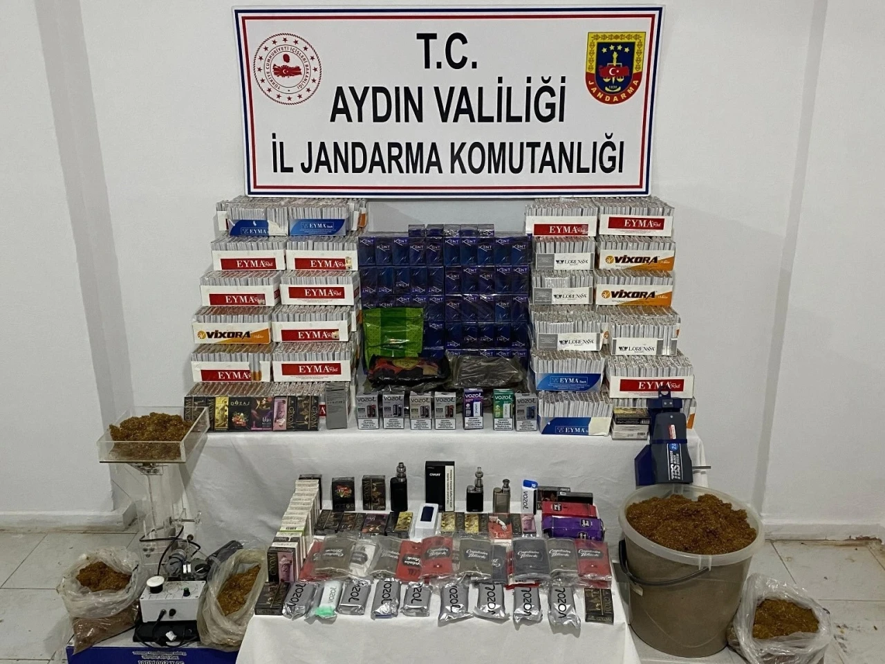 Aydın’ın Kuşadası ilçesinde piyasa değeri 1 milyon 125 bin TL olan kaçak tütün ve malzemeleri ele geçirildi. Aydın İl Jandarma Komutanlığı Kaçakçılık ve Organize Suçlarla Mücadele Şube Müdürlüğü ve Kuşadası İlçe Jandarma Komutanlığı ekiplerince sigara kaçakçılığına yönelik koordineli çalışma gerçekleştirildi. Edinilen bilgiye göre ekipler, Kuşadası ilçesi Güzelçamlı Mahallesi’nde U.Y. isimli şüpheli şahsın işyerine baskın düzenledi. Yapılan adli aramada piyasa değeri yaklaşık 1 milyon 125 bin TL olan 139 bin 440 adet içi tütün doldurulmuş makaron, toplam 127 kilogram poşetlenmiş halde 265 parça nargile tütünü, 16 kilogram kıyılmış tütün, bin 375 adet sigara, 40 adet puro, 40 adet elektronik sigara, 12 adet sigara sarma makinası ele geçirildi. Yakalanarak gözaltına alınan şüpheli hakkında başlatılan adli ve idari süreç devam ediyor.