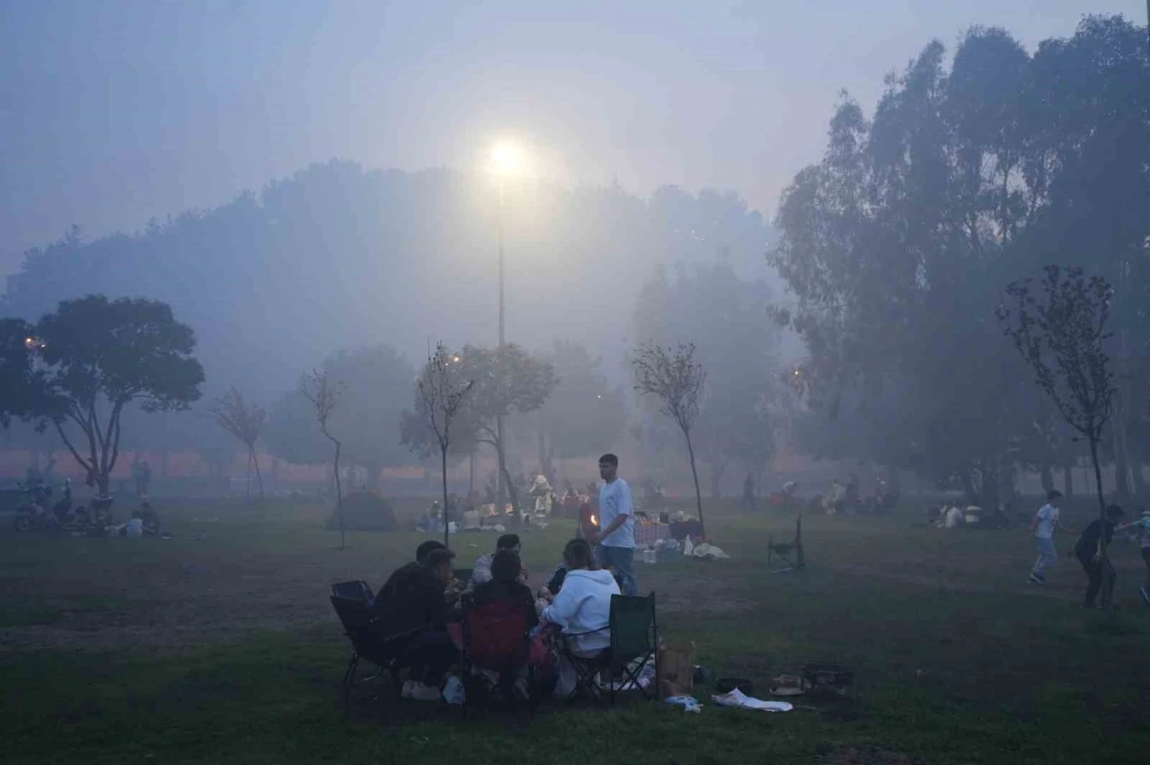 SAMSUN (İHA) – Samsun’da park alanında toplanan binlerce kişi, geleneksel hale getirdikleri alışkanlık üzerine oruçlarını piknik yaparak mangal eşliğinde açıyorlar. Birçok mangalın aynı anda yanmasıyla da gökyüzünü duman bulutu kaplıyor.