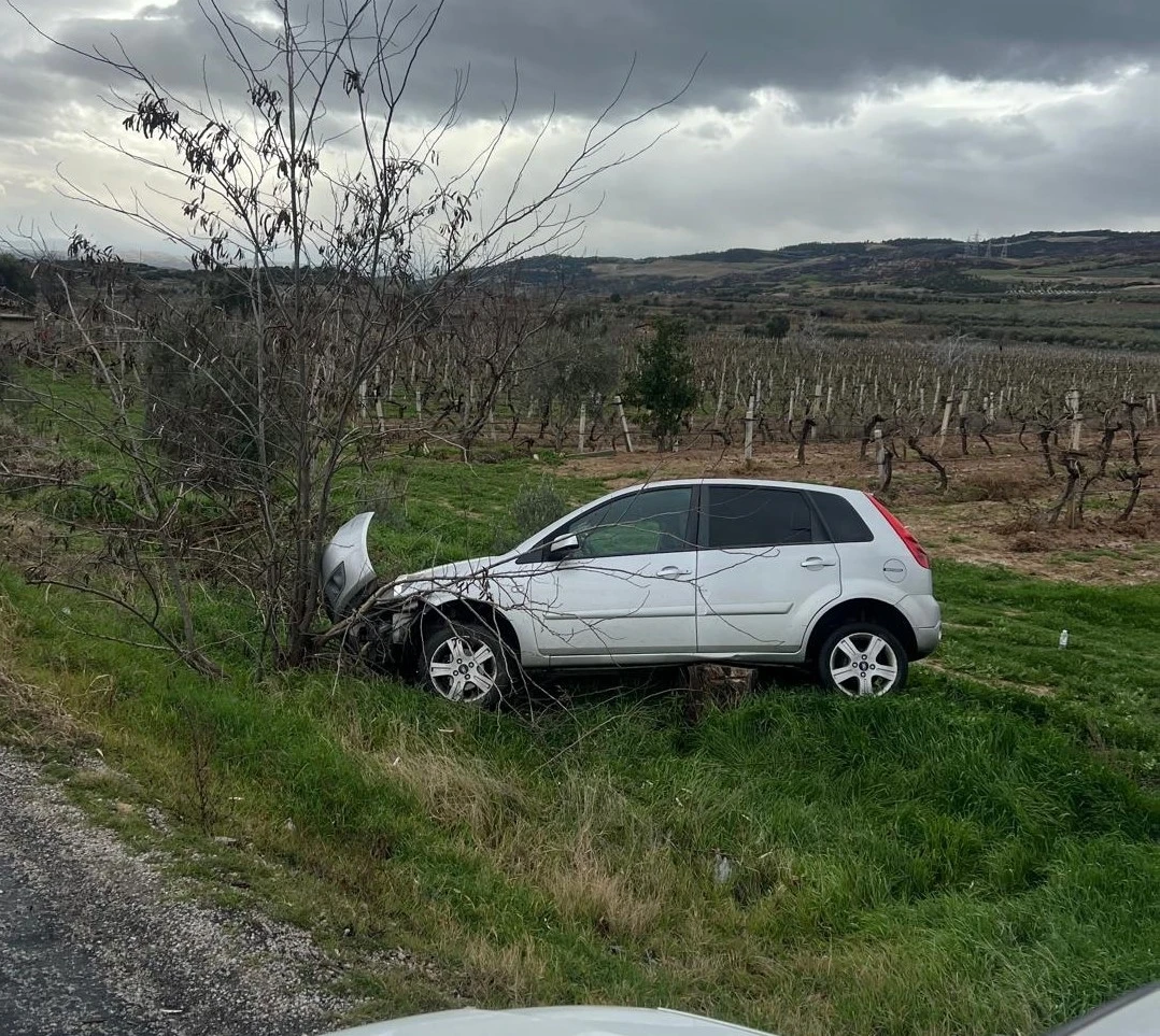 Denizli’nin Buldan ilçesinde 20 ADR 254 plakalı otomobil, yağmur yağışıyla kayganlaşan yolda sürücüsü M. S.’nin direksiyon hâkimiyetini kaybetmesi sonucu kontrolden çıkarak üzüm bağına uçtu. Kazada can kaybı ve yaralanma yaşanmazken, otomobilde ağır maddi hasar meydana geldi.