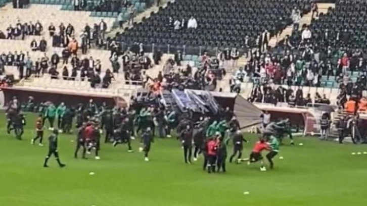 Bursaspor tribününden çekilen videoda, ısınmak için sahaya çıkan Amedsporlular ile Bursasporlular arasında arbede çıktığı görüldü. İki grup arasında çıkan olayları engellemek için birçok görevli araya girdi.