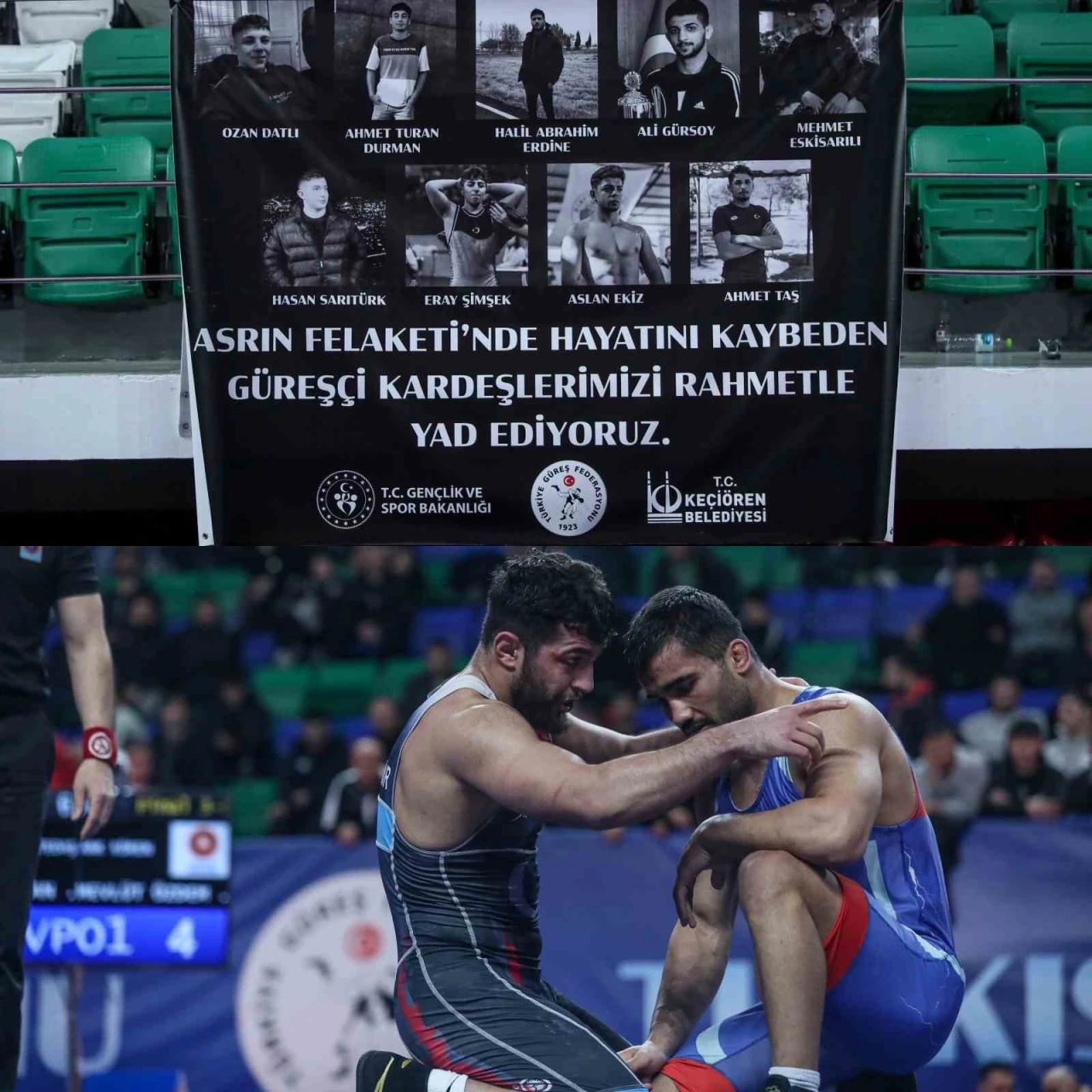 Türkiye Güreş Federasyonu tarafından salona, "Asrın Felaketi’nde hayatını kaybeden güreşçi kardeşlerimizi rahmetle yad ediyoruz” pankartı asılırken, güreşçi Mevlüt Özdemir, “Onlar için güreşiyoruz" dedi.