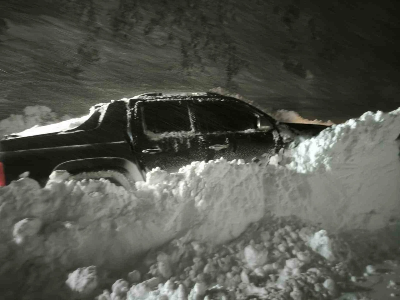 Yoğun kar yağışı ve tipi nedeniyle görüş mesafesinin düştüğü bölgede çalışma başlatan ekipler, yaklaşık 2 saatlik müdahalenin ardından kar kütlesi altındaki araca ulaştı. Araçta mahsur kalan vatandaşlar, ekiplerce yara almadan kurtarıldı.