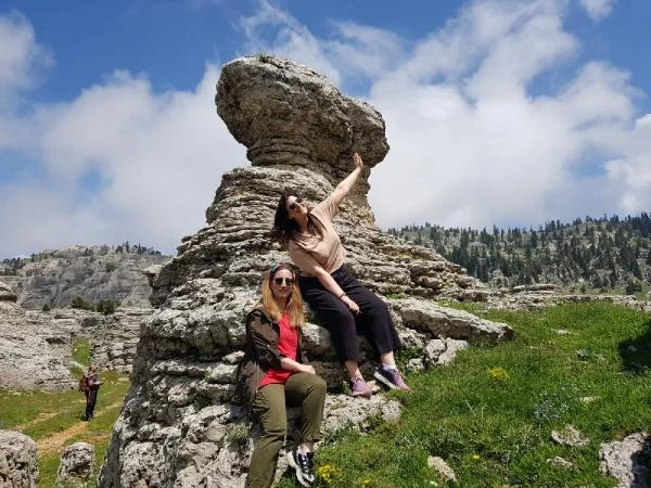 Malik GÖDELİNER/ADANA, (DHA)- ADANA’nın Kozan ilçesi Göller Yaylası’nda Kapadokya’daki peri bacaları benzeri ilginç kaya oluşumları, fotoğraf sanatçıları ve doğa yürüyüşü tutkunlarına görsel şölen sunuyor. Hopka Dağı eteklerinde, bin 600 rakımlı bölgede peri bacalarını andıran ilginç doğal taş yapılar görenleri hayran bırakıyor. Çukurova’nın Kapadokya’sı olarak tanınan bölge, her hafta sonu fotoğraf sanatçıları ile doğaseverlerin vazgeçilmez adresleri arasında yer alıyor. Bu kapsamda Adanalı doğa tutkunu bir grup bölgede tarih ve doğa yürüyüşü etkinliği düzenledi. Grup üyeleri Büden Mağarası, Palanın Yurdu, Ziyaret Tepe, Üç Oğlan Mağarası, Gelin Güvey Kayası, Ayı Oluğu Düzlüğü, Üç Oğlan Kayası ve Kepez Tepesi olarak bilinen mevkileri gezdi. Bölgede zaman zaman yağmur ve mevsim çiçekleri arasında yürümek herkesi etkiledi. Kısa bir şaşkınlık yaşayan doğaseverler bölgenin mutlaka turizme kazandırılması gerektiğini söyledi. 12 kilometrelik yürüyüş, Akoluk mahallesi civarı orman dokusu görselinde yemek, dinlenme ve keyif molasının ardından sona erdi. (DHA)