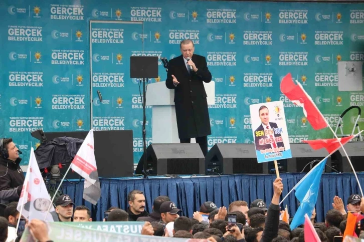 Cumhurbaşkanı Erdoğan, “Sizlerle birlikte olmaktan memnuniyet duyuyorum. Biz Şanlıurfa’yı en iyi biz biliriz onlarda bizi iyi bilir. Bizim aramazdaki aşkı sevdayı muhabbeti anlamak isteyenlerin gönül gözüyle bakması lazımdır. Gelip geçici gündemlerin heyecanı ile Şanlıurfa’ya bakan bunları göremez. Şanlıurfa bugün yine bir başka güzel, bir asır önce işgalci Fransızları buradan kovarak şanlı unvanı aldı. Bugünde sizlere şahsi hırsıyla hareket edenlere terör örgütüne sırtını dayayanlara ekmeden biçme peşinde olanlara küçük hesapları için şehrinin geleceğini tehlikeye atanlara mili iradenin arkasından dolanmak isteyen fırsatçılara geçit vermeyeceğinize inanıyorum. Bizim siyasetimiz, eser ve hizmet siyasetidir. Yatırım, program, proje, vizyonda bizimle yarışacak siyasi rakip tanımıyoruz. Bu kardeşiniz Türkiye’nin cumhurbaşkanı şimdi yerel yönetimlerde 31 Mart’ta yerel yönetimleri de cumhur ittifakına verdiğiniz zaman biz bir olacağız Şanlıurfa’yı yatırımlarla başka bir noktaya getireceğiz. Diğerlerinin böyle bir imkanı var mı. Biz milletimize asla yalan söylemedik. Söylediğimizi yapmak için gece gündüz gayret gösterdik. Bir dönem ülkemiz siyasetine damgasını vuran, onlar ne veriyorsa 5 katı benden zihniyetinin siyasetini hatırlıyorsunuz. Ülkemiz popülist siyasetçilerin ekonomide bıraktığı enkazı uzun yıllar toparlayamadı. Şimdi aynı zihniyeti yeniden hortlatmaya çalışanlar var” dedi.