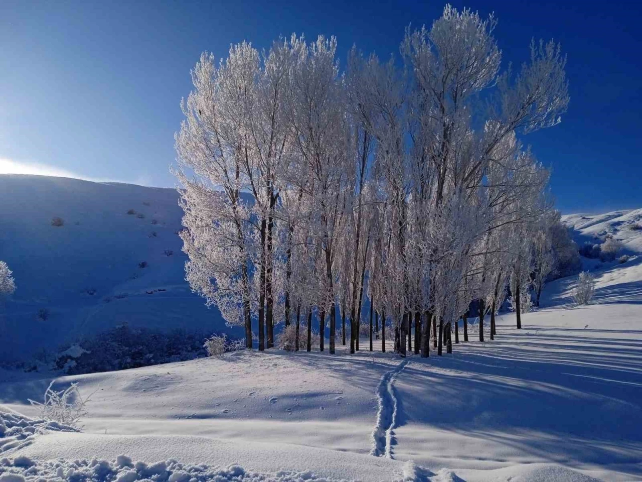 Bayburt’un Demirözü ilçesinde soğuk hava nedeniyle ağaçların üzeri kırağıyla kaplandı. Sisin de etkili olduğu ilçe merkezinde kırağı ve sisin birleşimi güzel görüntüler oluşturdu.