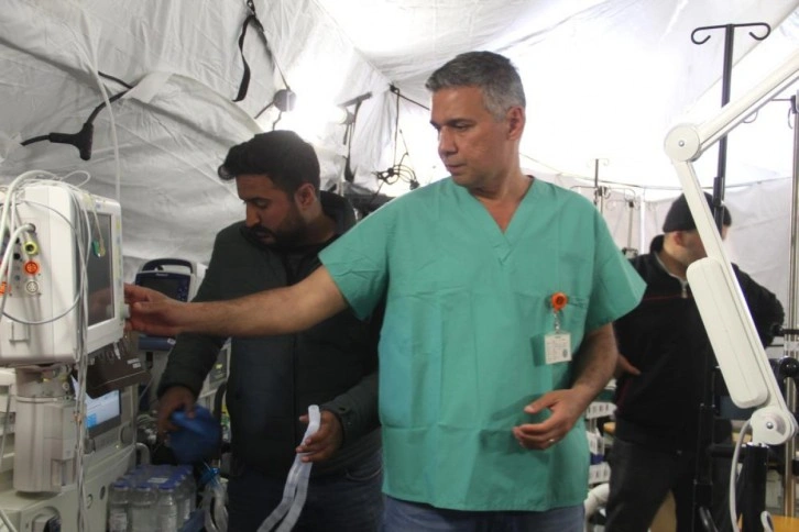Depremde annesi ve babasını kaybeden Koyuncu “Anestezi profesörüyüm. Ben Antakyalıyım. Zaten buraların çocuğuyum. Memleketimi bırakmadım, bırakmam. Sağ olsun, rektör hocamız da öyle. Ben de annemi babamı kaybettim. Ama buna rağmen ağlaya ağlaya çalıştım, çalışırız biz” diye konuştu.