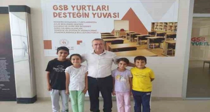 Eskişehir'de bulunan KYK Doğan Aslan Bey öğrenci yurdunda kalan depremzede çocuklar yurt müdürü Çoşkun Akın'la bayramlaştı.