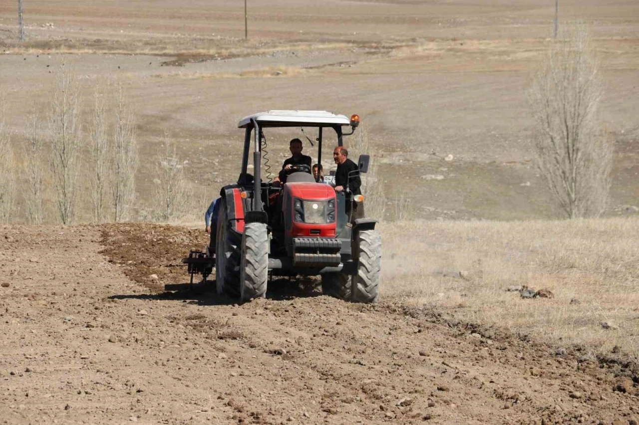 Güneşin ilk ışıklarıyla beraber traktörlerle tarlalarını sürerken, diğer yandan arazi üzerindeki taşlar tek tek toplanarak toprağın daha verimli bir hale getirilmesi sağlanıyor.