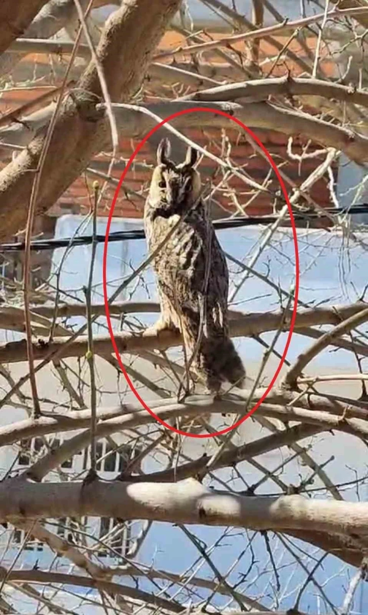 Köylüler, ilk defa bu türden bir baykuş gördüklerini belirterek, o anı cep telefonu kamerasıyla kaydetti. Baykuş, bir süre sonra uçarak gözden kayboldu.