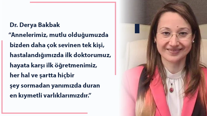 “Annelerimiz, mutlu olduğumuzda bizden daha çok sevinen tek kişi, hastalandığımızda ilk doktorumuz, hayata karşı ilk öğretmenimiz, her hal ve şartta hiçbir şey sormadan yanımızda duran en kıymetli varlıklarımızdır.” diyen Dr. Bakbak, “Dünyanın başka hiçbir dilinde, ‘Yemez yedirir’ yahut, ‘Giymez giydirir’ diye bir deyim yoktur. Aynı şekilde bu topraklardan başka hiçbir yerde, ‘Ana gibi yâr olmaz’ dendiği görülmemiştir. Bu bizim annelerimize, Türk annelerine mahsus bir asalet temsilidir. Tarlada çiftçiyken, fabrikada işçiyken, şehirde memurluk yahut yöneticilik yaparken aynı zamanda evlatlarını en iyi şekilde yetiştirmeyi, ailesinin birleştirici gücü olmayı eksiksiz bir biçimde başarmışlardır. Merhum Aşık Veysel bir dörtlüğünde diyor ya; ‘Çocuğudum anam bana ders verdi / Okumamı çalışmamı ön gördü / Milletine bağlı ol da dur derdi / Vatan sevgisini giyitti Anam.’ İşte bizlere ilk önce iyi birer insan olmayı, ardından vatanımızı, milletimizi sevmeyi öğreten annelerimiz, Büyük ve Güçlü Türkiye’nin temellerini inşa eden manevi mimarlarımızdır.” diye konuştu.