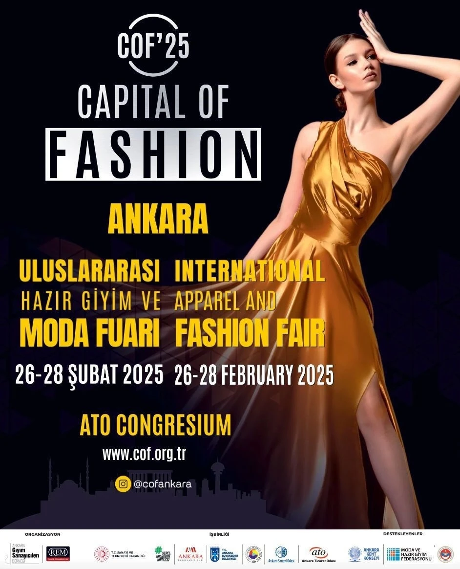 ATO’nun destekleriyle 26-28 Şubat tarihleri arasında ATO Congresium’da bu yıl ikinci kez kapılarını açmaya hazırlanan ‘Ankara Uluslararası Hazır Giyim ve Moda Fuarı’ (Capital of Fashion-COF’25), hazır giyim ve tekstilde dünyanın önde gelen markalarını bir araya getirmeye hazırlanıyor. Başkent’in yerleşik markalarının katılımıyla gerçekleşecek fuarda hazır giyim ve tekstil sektörünün önde gelen 100’den fazla markası ile 30 farklı ülkeden 500’den fazla yerli ve yabancı alıcının bir araya gelmesi bekleniyor. Başkent’in kalbi moda ile atacak