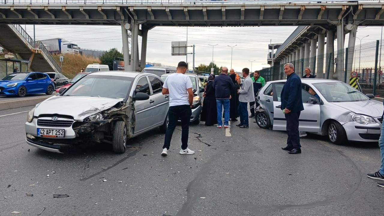 4 aracın karıştığı kazada 1 kişi hafif yaralandı. Kaza nedeniyle tek şeride düşen karayolunda yoğun trafik oluştu.