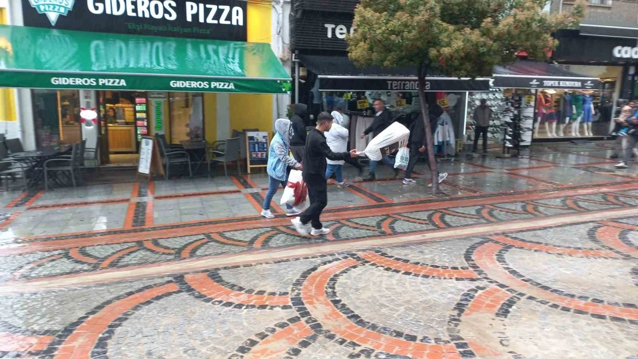Bayram alışverişine çıkan vatandaşlar yağışa hazırlıksız yakalanırkne, bazı vatandaşlar da iş yerleri ve binaların altında mahsur kaldı.