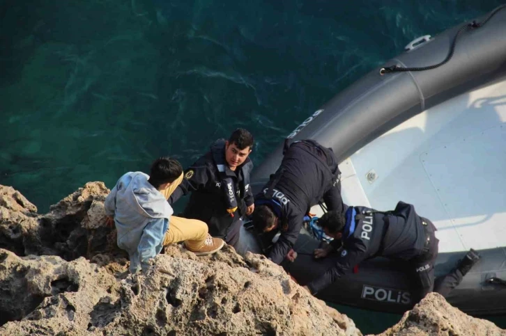 Deprem bölgesi Diyarbakır’dan ailesiyle Antalya’ya gelen 15 yaşındaki çocuk, falezlerde mahsur kaldığı kayalık alandan deniz polisince kurtarıldı.