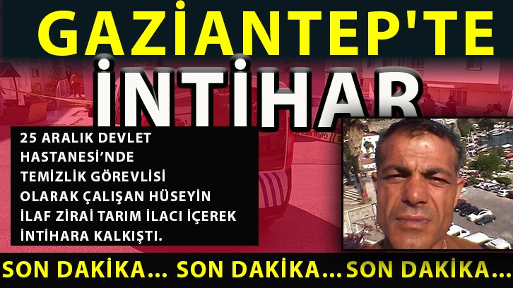 Gaziantep’te 25 Aralık Devlet Hastanesi’nde temizlik görevlisi olarak çalışan Hüseyin İlaf zirai tarım ilacı içerek intihara kalkıştı. Hastanede tedavi altına alınan 1 çocuk babası organlarının iflas etmesi nedeniyle hayatını kaybetti.