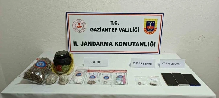 Gaziantep’te jandarma ekiplerince yapılan şok huzur güven uygulamasında 1 kilo 520 gram skunk ele geçirilirken aranan 3 şüpheli yakalandı.