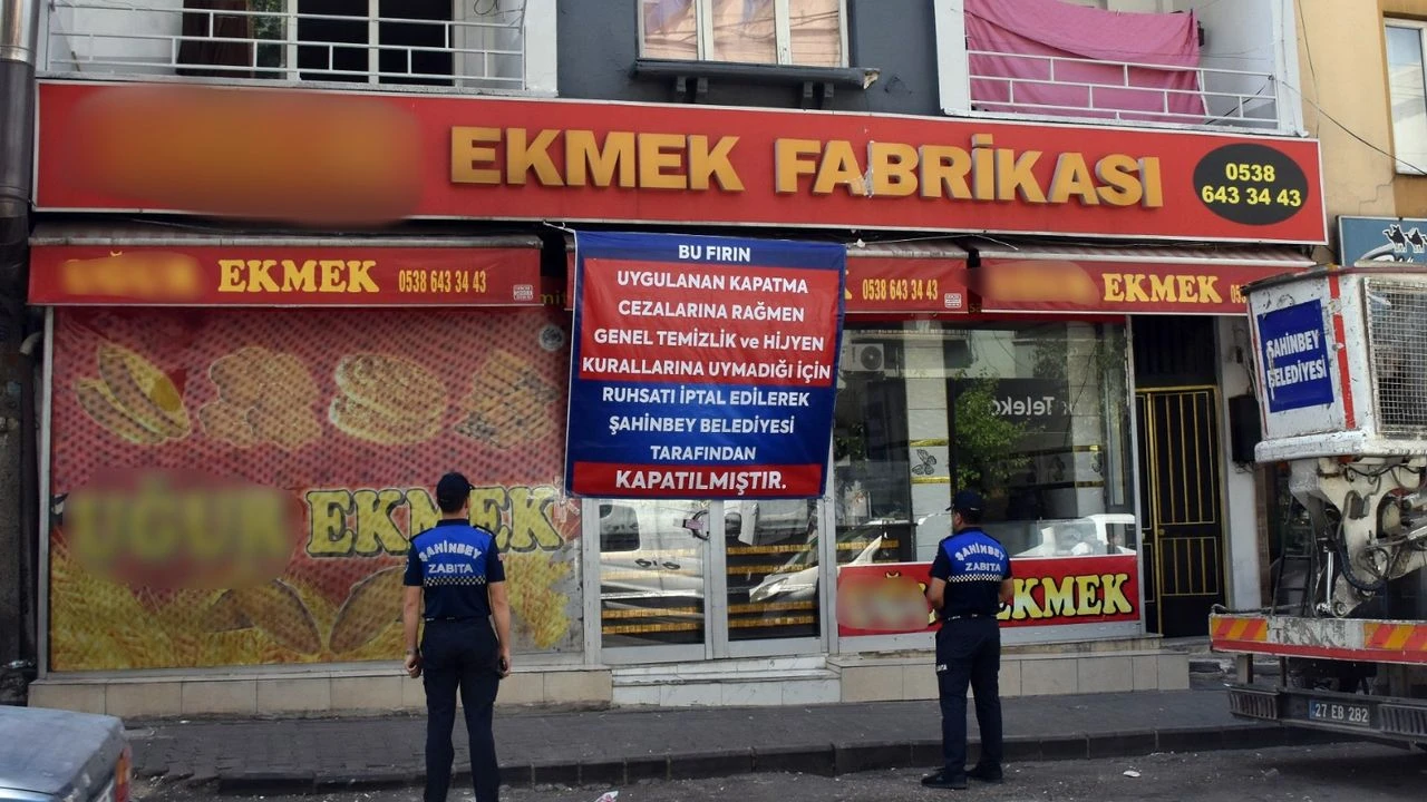 Şahinbey Belediyesi, halk sağlığını tehdit eden işletmelere karşı denetimlerini sürdürüyor. Zabıta Müdürlüğü ekipleri, ilçede faaliyet gösteren ve daha önce birçok kez hijyen ve temizlik kurallarına uymadığı için uyarılan bir fırının iş yeri ruhsatını iptal ederek işletmeyi süresiz olarak kapattı.