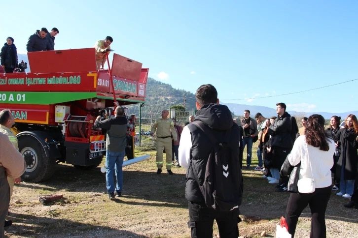 Erişel, orman teşkilatının 1839’da kurulan çok köklü bir teşkilat olduğunu, Osmanlının çok güzel kayıtlar tuttuğunu dile getirdi. Asker ve polisten sonra en çok şehit veren kurumun ise Orman Genel Müdürlüğü olduğu bilgisini veren Erişel orman söndürme gönüllülerinden en çok ‘örtü yangını’ söndürme konusunda yardım istenildiğini söyledi. Gönüllü ekipler için de yangın söndürmede kullanılan kıyafetler yapıldığını ve yangın gönüllüsü kimliği olmayanların yangın bölgesine alınılmadığının altını çizen Erişel olumsuz bir durum olduğunda tazminat ödendiğini, yangın söndürmeye gidildiğinde ulaşım, yeme, içme, barınma ihtiyaçlarının karşılandığını, üstün başarı gösterenlere teşekkür belgesi verildiğini ifade etti. Öğrencilere yapılan sunumun ardından PAÜ’ye getirilen arazözün yangınlarda nasıl kullanıldığı gösterildi ve öğrencilere yangın söndürme konusunda uygulama yaptırıldı.