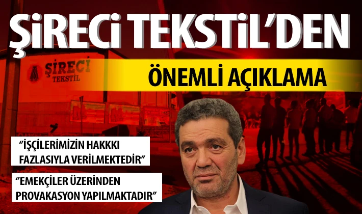 Grevin sendika temsilcilerinin işçileri kışkırtması sonucu meydana geldiğine de dikkat çekilen açıklamada, ‘’Bu kriz ortamında ürettiğimiz ürünlerimizi maliyet fiyatına dahi satmakta zorlanmakta, sattığımız ürünün de parasını tahsil etmekte zorlanmaktayız. Bu zorluğa rağmen biz bu sıkıntıları işçimize hissettirmemeye çalışmış başta ücretleri olmak üzere tüm haklarını günü gününe geciktirmeksizin ödemiş bulunmaktayız. Son yapılan bu grevin maaş zammı ile ilgisi bulunmamakta, kaos ortamından nemalanmaya çalışan sendikacıların ve bazı kanun dışı odaklarca yönlendirildiği iddia edilen siyasetçilerin eseridir. Biz Şireci Tekstil A.Ş. olarak işçilerimizin ülkemizde kaos üretmeye çalışanların değil, üretim yaparak ülkemizi kalkındırmaya çalışanların yanında olmalarını tavsiye ediyoruz.’’ İfadelerine yer verildi.