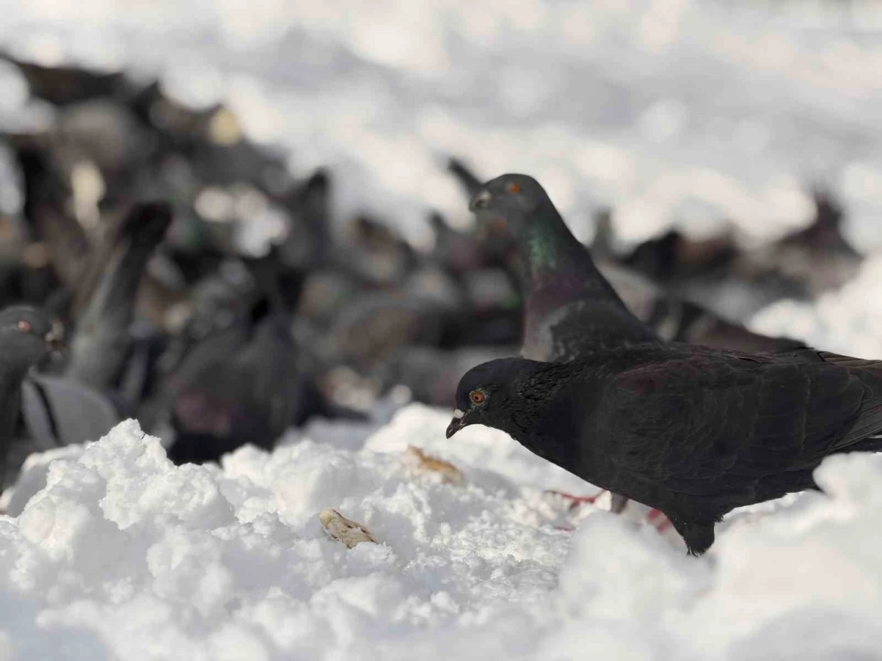 Düzce’de kar sebebi ile yemek bulmakta güçlük yaşayan güvercinleri bir vatandaş marketten ekmek alarak beslemesi yürekleri ısıttı.