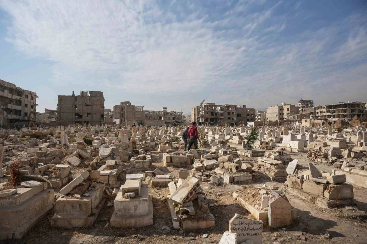 Suriye’de 13 yıl süren iç savaşın ardından Esad rejiminin devrilmesiyle savaşın harabeye çevirdiği Şam’ın kırsal mahalleleri havadan görüntülendi. Enkaz yığınlarıyla dolu mahallelerde, savaşın yıkıcı izleri gözler önüne seriliyor. Tüm binaların enkaza döndüğü dikkat çekerken cami minarelerinin de yıkıldığı görülüyor. Esad’ın devrilmesinin ardından mahallelerine dönen halk, yıllar sonra yakınlarının mezarlarını ziyaret ediyor. Görüntülerde çok sayıda sivil Suriyelinin de temizlik çalışmalarına katıldığı görülüyor.